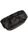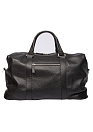Вместительная дорожная сумка черного цвета из прочной зернистой кожи. Размер: 66 см.* 35 см.* 25 см. Внешний карман на молнии. Основное отделение на молнии с двумя бегунками. Внутри основного отделения: карман на молнии и карман и открытых кармана, в том числе под телефон. Съемный плечевой ремень. Металлические пукли (ножки) для защиты дна сумки. Чехол из дышащего материала (пыльник) для хранения сумки.