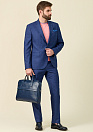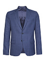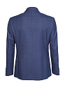 Костюм  в клетку синих оттенков, из шерстяной премиальной ткани итальянского производства. Технология изготовления пиджака «полуканвас» – обеспечивает естественность силуэта, делая его визуально стройнее, пиджак естественно облегает тело, повторяя его движения. Полуприталенный силуэт Milano. Премиальные пуговицы пришиты невидимым с изнаночной стороны швом – 2 по борту, по 4 на рукавах. Лацкан классический. Карманы: 1 нагрудный прорезной с листочкой, 2 боковых прорезных с клапанами, 4 внутренних кармана. 2 шлицы по спинке. Ткань подклада из однотонной вискозы, не электризуется, не вызывает раздражения. Классические брюки, средней посадки
