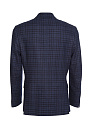 Пиджак в клетку в серо-синей гамме цветов из шерсти с добавлением кашемира. Производитель ткани  ERMENEGILDO ZEGNA - Италия. Шерсть придает гигроскопичность, высокую прочность и эластичность, кашемир - гладкую поверхность мягкость и благородство. Технология изготовления пиджака «полуканвас» – обеспечивает естественность силуэта, делая его визуально стройнее. Полуприталенный силуэт Milano. Пуговицы пришиты невидимым с изнаночной стороны швом – 2 по борту, по 4 на рукавах. Лацкан классический. Карманы: 1 нагрудный прорезной с листочкой, 3 боковых прорезных с клапанами, 4 внутренних кармана. 2 шлицы по спинке. Подкладка на пиджаке из однотонной вискозы, не электризуется, не вызывает раздражения.