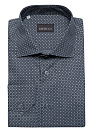 Рубашка приталенного силуэта с орнаментом серо-синего цвета из стопроцентного хлопка. Длинный рукав.