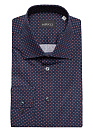 Рубашка синего цвета с красно-белым орнаментом из стопроцентного хлопка. Приталенный силуэт. Длинный рукав.