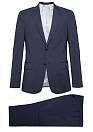 Классический костюм из тонкой шерсти темно-синий. Технология изготовления пиджака «полуканвас» – обеспечивает естественность силуэта, делая его визуально стройнее, пиджак естественно облегает тело, повторяя его движения. Полуприталенный силуэт Milano. Премиальные пуговицы пришиты невидимым с изнаночной стороны швом – 2 по борту, по 4 на рукавах. Лацкан классический. Карманы: 1 нагрудный прорезной с листочкой, 2 боковых прорезных с клапанами, 4 внутренних кармана. 2 шлицы по спинке. Ткань подклада из однотонной вискозы, не электризуется, не вызывает раздражения. Классические брюки, средней посадки.