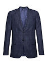 Костюм темно-синий в клетку из смеси шерсти, льна и шелка