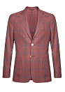 Облегченный пиджак бордовый в синюю клетку из смеси шерсти, шелка и льна. Шерсть обладает терморегулирующими свойствами, шелк добавляет легкость и яркость, у льна антибактериальные качества. Производитель ткани итальянский бренд DRAGO. Отсутствие подкладки позволяет полностью оценить качество оформления внутренних швов. Силуэт полуприталенный. Карманы: 1 нагрудный прорезной с листочкой, 2 боковых накладных, 2 внутренних кармана. 2 шлицы. Пиджак отлично сочетается с поло и футболками, а также с летними льняными или хлопковыми брюками, джинсами и шортами.