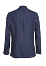 Пиджак темно-синего цвета из смеси льна, шерсти и шелка с твидовым геометрическим орнаментом. Производитель ткани  ERMENEGILDO ZEGNA - Италия. Лен имеет ценные гигиенические свойства, способные отводить влагу. Шерсть обладает терморегулирующими свойствами. Шелк придает легкость, яркость и глянцевый блеск. Твидовое плетение нитей придает пиджаку фактурность.Технология изготовления пиджака «полуканвас» – обеспечивает естественность силуэта, делая его визуально стройнее. Полуприталенный силуэт Milano. Пуговицы пришиты  невидимым с изнаночной стороны швом – 2 по борту, по 4 на рукавах. Лацкан классический. Карманы: 1 нагрудный прорезной с листочкой, 2 боковых накладных, 4 внутренних кармана. 2 шлицы по спинке. Ткань подклада на пиджаке однотонная, не электризуется, не вызывает раздражения.