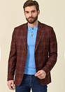 Пиджак коричневый в клетку из смеси шерсти, шелка и льна