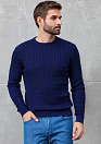 Джемпер темно-синего цвета с круглой горловиной и фактурным орнаментом в виде сплетенных кос.