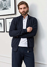 Спортивный костюм с воротником-стойка и застежкой на металлическую молнию. Трикотажные манжеты на рукавах и поясе толстовки, 2 внешних кармана на молнии, 1 внутренний карман на молнии. Брюки слегка заужены книзу; пояс брюк на широкой резинке, ширина по талии дополнительно регулируется кулиской со шнурком; 4 внешних кармана: 2 на молниях. Основная ткань толстовки с мелким орнаментом "гусиные лапки" двух оттенков черно-синего и серого. Подкладка, манжеты рукавов, пояс толстовки, а также брюки черно-синего цвета. Материалы, использованные в спортивном костюме обеспечивают отличную воздухопроницаемость, а продуманный дизайн – свободу движений.