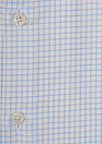 Рубашка полуприталенного кроя белая в голубую клетку. Благодаря технологии Non Iron, устойчива к сминанию в процессе носки, а использование утюга после стирки не является обязательным (при соблюдении правил ухода).