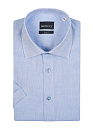 Голубая льняная рубашка с коротким рукавом