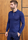 Джемпер-поло синего цвета из шерсти мериноса с застежкой на пуговицы.