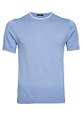 Футболка из хлопка Пима (Pima cotton) - очень мягкая и приятная на ощупь, легкая, прочная и устойчива к сминанию. Канты белого и оранжевого цвета на манжетах и горловине добавляют оригинальность голубой футболке.