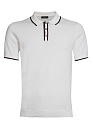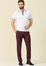 Поло с воротником на пуговицах белого цвета, с синей и бордовой полосками на воротнике и рукавах. Трикотаж из премиального хлопка Пима. Ткань очень нежная, приятная на ощупь, при этом достаточно прочная и гипоаллергенная.
