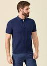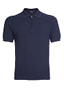 Поло с воротником на молнии темно-синего цвета с фактурным орнаментом из премиального хлопка Пима. Ткань очень нежная, приятная на ощупь, при этом достаточно прочная и гипоаллергенная.