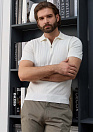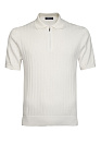 Поло из хлопка Пима (Pima cotton) с добавлением шелка и льна. Ткань очень мягкая и приятная на ощупь, легкая, прочная и устойчива к сминанию. Застежка на молнию. Цвет молочный с объемными полосами. Вертикальный орнамент делает силуэт визуально более стройным.