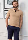 Поло из хлопка Пима (Pima cotton). Ткань очень мягкая и приятная на ощупь, легкая, прочная и устойчива к сминанию. Застежка на молнию. Цвет бежевый. Объемный геометрический орнамент.