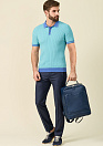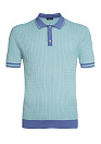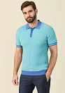 Поло с воротником на пуговицах светло-бирюзового цвета с фактурным орнаментом в виде кос. Воротник, полоски на рукавах и резинка внизу поло светло-синего цвета. Ткань из хлопка Пима - очень нежная, приятная на ощупь, при этом достаточно прочная и гипоаллергенная.