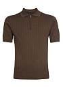 Поло с воротником на молнии коричневого цвета с фактурными вертикальными полосами. Премиальная ткань из смеси хлопка, шелка и льна.