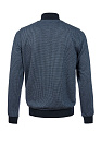 Спортивный костюм синего цвета. Толстовка с воротником-стойка и застежкой на металлическую молнию. Трикотажные манжеты на рукавах и поясе толстовки, 2 внешних кармана на молнии, 1 внутренний карман на молнии. Брюки слегка заужены книзу; пояс брюк на широкой резинке, ширина по талии дополнительно регулируется кулиской со шнурком; 4 внешних кармана: 2 на молниях. Основная ткань толстовки с мелким орнаментом "гусиные лапки". Подкладка, манжеты рукавов, пояс толстовки, а также брюки темно-синего цвета. Материалы, использованные в спортивном костюме обеспечивают отличную воздухопроницаемость, а продуманный дизайн – свободу движений.