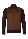Стильная мужская трикотажная куртка коричневого цвета с застежкой на молнию. Изготовлен из 100% сверхтонкой мериносовой шерсти, обеспечивающей невероятный комфорт. Элегантная вставка из алькантары делает кардиган универсальным элементом вашего гардероба: в холодное время года его можно носить под пальто или пуховик, а в теплое - как легкую куртку поверх трикотажа или рубашки. Выберите качество и стиль для своего повседневного образа.