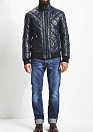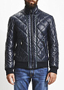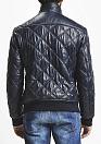 Стеганая кожаная куртка-бомбер, люксового качества, темно-синего цвета с зеленой отделкой.
