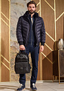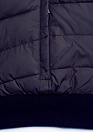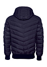 Стеганая короткая куртка-пуховик темно-синего цвета с капюшоном. Длина по спинке в размере 50: 72 см. Застежка на металлическую молнию с двумя бегунками. Воротник-стойка. Съемный капюшон на кнопках, планка убирается в воротник, пата регулирует глубину капюшона, кулиска регулирует объем по краю. Трикотажные манжеты рукавов и пояс. 3 внешних кармана на молниях: 1 из которых на левом рукаве, 2 внутренних кармана на молниях. Ткань верха защищает от ветра, влаги и холода. Благодаря особым свойствам структуры волокон, способным отводить влагу - между курткой и телом поддерживается сухой микроклимат. Подкладка из износостойкой ткани. Утеплитель экопух - инновационный материал, обладающий высокой теплоемкостью.