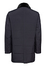Удлиненная стеганая куртка-пальто с меховым воротником. Длина по спинке в размере 50: 88,5 см. Цвет: темно-синий. Застежка на металлическую молнию с двумя бегунками и молнию и пуговицы. Воротник отложной.Съемный меховой воротник из меха норки крепится на молнию и пуговицы. По низу спинки шаговая шлица