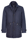 Утепленная куртка-плащ с манишкой. Длина по спинке в размере 50 - 85,5 см. Цвет темно-синий. Застежка на металлическую молнию и пуговицы из натурального рога. Воротник отложной. Манишка с воротником-стойкой с застежкой на молнию, крепится к куртке с помощью молний. Рукава с патами на пуговицах с регулировкой ширины низа рукава.  По низу спинки шаговая шлица на скрытых кнопках. 4 внешних кармана: 2 на магнитных застежках, 2 на молнии, 2 на молнии и клапанах с кнопками. 2 внутренних кармана на молнии. Ткань верха защищает от ветра, влаги и холода. Благодаря особым свойствам структуры волокон, способным отводить влагу - между курткой и телом поддерживается сухой микроклимат. Подкладка стеганая однотонная. Утеплитель: Valtherm® - теплоизоляционный материал, сохраняющий температуру тела.