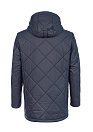 Утепленная стеганая куртка средней длины с капюшоном. Стежка крупным ромбом выполнена вручную. Цвет: темно-синий. Длина по спинке в размере 50: 83 см. Застежка на металлическую молнию и кнопки. Планка, позволяющая застегивать кнопки без давления на тело. Воротник-стойка. Внутренняя сторона воротника из мягкой микроворсовой ткани. Капюшон съемный на кнопках, пата на кнопках регулирует глубину капюшона, кулиска регулирует объем по краю. Планка крепления капюшона убирается в воротник, сохраняя аккуратный внешний вид. 4 внешних кармана: 2 верхних на молниях, 2 боковых нижних на магнитных застежках. 2  внутренних кармана на молниях. Ткань верха с мембранным покрытием - защищает от ветра, влаги и холода. Благодаря особым свойствам структуры волокон, способным отводить влагу - между курткой и телом поддерживается сухой микроклимат. Подкладка из современной прочной ткани с орнаментом. Утеплитель: Valtherm® - высококачественный теплоизоляционный материал, износостойкий, сохраняющий температуру тела.