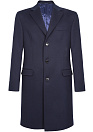 Пальто классического кроя, полуприталенного силуэта, тёмно-синего цвета из шерсти с добавлением кашемира. Шерсть придает гигроскопичность, высокую прочность и эластичность, кашемир - гладкую поверхность мягкость и благородство. Производитель ткани ZEGNA - один из лидеров по производству костюмных тканей класса люкс.Технология изготовления «SOFT» обеспечивает комфортную «мягкую» посадку пальто. Пуговицы пришиты невидимым с изнаночной стороны швом – 3 по борту, по 4 на рукавах. Лацкан классический. Карманы: 1 нагрудный прорезной с листочкой, 2 боковых прорезных с клапанами, 2 внутренних. Шлица по спинке. Подкладка на пиджаке полная, по низу пиджака пришита на специальном оборудовании, имитирующем ручной стежок, что позволяет подкладке вести себя более свободно и смещаться вместе с тканью верха пиджака в случае усадки. Ткань подкладки не электризуется, не вызывает раздражения.