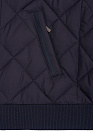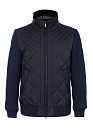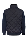 Короткий легкий пуховик - бомбер с меховым воротником. Длина по спинке в размере 50: 73 см. Цвет: темно-синий. Стежка выполнена вручную. Застежка на металлическую молнию с двумя бегунками. Накладной воротник из меха кролика крепится на молнию и пуговицы. Манжеты рукавов и пояс из плотного трикотажа. 2 внешних кармана на молниях. 2 внутренних кармана на молниях. Ткань верха защищает от ветра, влаги и холода. Благодаря особым свойствам структуры волокон, способным отводить влагу - между курткой и телом поддерживается сухой и теплый микроклимат. Рукава выполнены из шерстяного трикотажа с мембранной и водоотталкивающим покрытием. Подкладка из износостойкой ткани с орнаментом. Утеплитель: экопух - инновационный  материал, обладающий высокой теплоемкостью.
