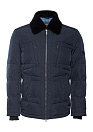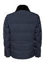 Пуховик темно-синий с капюшоном и меховой опушкой