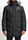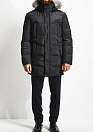 Один из самых теплых в коллекции, удлиненный пуховик, представительского класса, премиального качества, черного цвета, с отделкой натуральной кожей.
