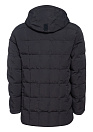 Пуховик темно-синий с капюшоном и меховой опушкой
