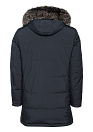 Удлиненный стеганый пуховик с капюшоном и меховой опушкой. Самый теплый пуховик коллекции. Длина по спинке в размере 50: 88,5 см. Цвет: темно-синий. Застежка на металлическую молнию с двумя бегунками и кнопки. Планка, позволяющая застегивать кнопки без давления на тело. Воротник-стойка, внутренняя сторона воротника из мягкой микроворсовой ткани. Съемный капюшон на кнопках, планка убирается в воротник, пата регулирует глубину капюшона, кулиска регулирует объем по краю. Съемная меховая опушка на кнопках. Мех: сноуфрост. Съемные трикотажные манжеты на молниях. По низу спинки 2 боковых шлицы на молниях. 2 внешних кармана на молниях, 2 магнитных застежках.  2 внутренних кармана - на молниях. При производстве пуховика применена технология Thermal Welding'а (термическая сварка), которая обеспечивает высокую герметичность и прочность, отсутствие проколов на месте шва, отсутствие миграции пуха, привлекательный внешний вид, благодаря плоскому шву. Благодаря особым свойствам структуры волокон, способным отводить влагу - между пуховиком и телом поддерживается сухой и теплый микроклимат.  Утеплитель: гусиные пух и перо (90/10%) с высоким показателем Fill Power (700-750), способен удерживать тепло при очень низких температурах. Стеганая подкладка со слоем высококачественного теплоизоляционного материала Valtherm® делает пуховик еще более теплым.