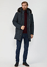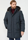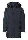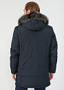 Пуховик темно-синий с капюшоном и меховой опушкой