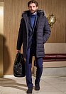 Удлиненный стеганый пуховик с капюшоном и меховой опушкой. Длина по спинке в размере 50: 91 см. Цвет: темно-синий. Застежка на металлическую молнию с двумя бегунками и потайные кнопки. Планка, позволяющая застегивать кнопки без давления на тело. Воротник-стойка. Съемный капюшон на кнопках, планка убирается в воротник, пата регулирует глубину капюшона, кулиска регулирует объем по краю. Съемная меховая опушка на молнии и кнопках. Мех: сноуфрост. Скрытая кулиска, позволяющая регулировать объем по талии. По низу спинки 2 шлицы на молниях. 4 внешних кармана : 2 на молниях, 2 на магнитах. 2 внутренних кармана на молнии.Ткань стрейч - создает идеальную посадку, при длительной носке не теряет своих первоначальных свойств. Благодаря особым свойствам структуры волокон, способным отводить влагу - между пуховиком и телом поддерживается сухой и теплый микроклимат. Подкладка из износостойкой ткани. Утеплитель экопух - инновационный материал, обладающий высокой теплоемкостью.