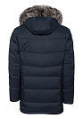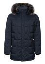 Пуховик темно-синий с капюшоном и меховой опушкой