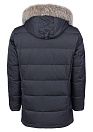 Застежка на литую металлическую молнию, с двумя бегунками и пуговицы из натурального рога на ветрозащитной планке. Воротник-стойка. Съемный капюшон на кнопках, планка убирается в воротник, пата регулирует глубину капюшона, кулиска регулирует объем по краю. Съемная меховая опушка на кнопках. Мех: Блюфрост - смесь черно-бурой лисы и голубого песца.