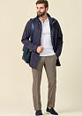 Ветровка удлиненная синего цвета. Длина по спинке в 50 размере: 86 см. Застежка на молнию с 2-мя бегунками и кнопки. Воротник стойка, скрытый капюшон спрятан в воротнике под молнией, по краю капюшона кулиска для регулировки объема. Манжеты рукавов регулируются по ширине на кнопках. 3 внешних кармана: верхний на молнии, 2 нижних накладные с клапаном на кнопке. 3 внутренних кармана: 2 из них на молнии, 1 на кнопке. Кулиска для регулировки объема по талии. Однотонная подкладка.